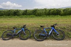 ひまわりも適度なヒルクライムも楽しめて、サイクリングにはぴったりな場所なのに、サイクルラックには自分たち自転車2台だけだった。