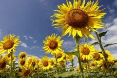 柔らかい日差しの下で写真を撮ったので、諦めて帰ろうとしたその時、完全に雲が取れて夏の強烈な日差しが戻ってきた。俄然ひまわりが輝きだす。やっぱりひまわりはこうでなくっちゃ!