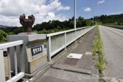 最後は国道353号線より手前側を曲がって、清津川を渡る。倉俣大橋の欄干には立派な縄文式土器が生えている。