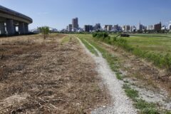帰路は来た道を戻る。せっかく河川敷にスペースがあるのだから、まっすぐなサイクリングロードでも作ってほしい。