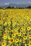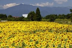 これまでひまわりの名所を巡ってきたが、ここ座間のひまわり畑は本当に素晴らしい。広大な広がりと大山を一緒に写せるからだ。画面のゴミのように見えるのは、トンボの大群。季節の移ろいを感じる。