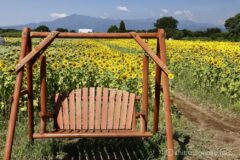 もうひまわりも終わりかと半分諦めていたが、作付けをずらしているのだろうか、四谷エリアの一番南側のひまわり畑は満開(やや過ぎ)だった。やったね!これなら十分写真が撮れる。ブランコまで設置してくれて。