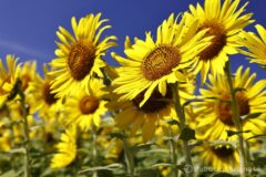 このエリアだけはちょうど満開。花に勢いがあり、汚れておらずとても綺麗。やはりひまわりは青空に映える。