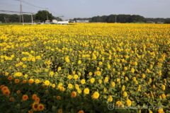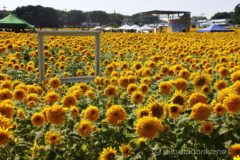 07:30 あけのひまわりフェスティバルの会場へ到着。広大なひまわり畑が広がっている。しかもちょうど見頃だ!