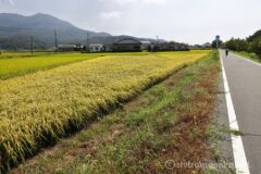 桜川を渡って、shibawanwanが走りたがっていた筑波りんりんロードに合流する。自転車専用道路で平坦で走りやすく、なにより景色が最高!右を見れば、どこまでも続く黄金色の田んぼ。左を見れば、たわわに実る稲穂と筑波山。これは自転車乗りに人気があるのが分かるよね。
