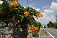 いばらきフラワーパークまでの道は走りやすい。左右どちらを見ても黄金色の広大な田んぼが広がる。ギリギリ刈り取られる前でよかった(笑)。道沿いの民家には、夏の花が鮮やかに咲いていた。