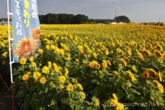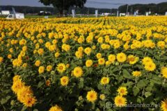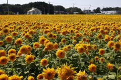 ひまわりの正面から撮ろうとすると、背景には田畑や民家しか入らない。しかしひまわり畑は圧倒的な広さだ。