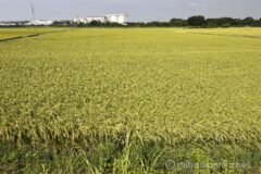 筑波山の周囲には、たわわに実った稲穂が頭を垂れ、美しい田園風景がどこまでも広がっている。こんな景色を見ていると、米不足なんてまったく信じられない。お米、ここにあるじゃん(笑)。