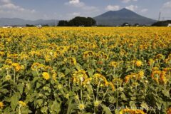 筑波山のひまわりは八重ひまわりで、テディベアというあまり見ない品種。一面のひまわり畑と筑波山の絵を撮ってみたい。