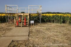 展望台の方面に行くと、ひまわり畑にこっそりベンチが置いてある。ひまわり畑の東側には展望台が設置されていたが、なんと営業時間外。展望台使用は10時からとのこと。そんな時間まで待っていられないので、筑波山一周してからまた来ます。